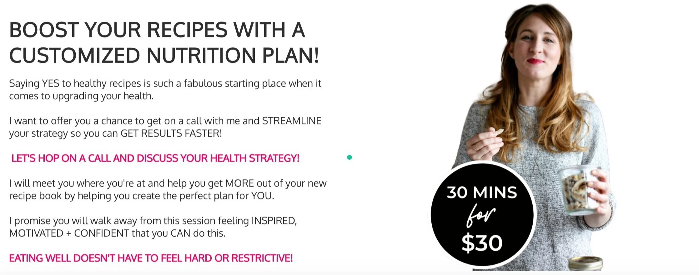 Because you expressed interest in changing your diet with your purchase, I WANTED TO GIVE YOU THE OPPORTUNITY TO TAKE YOUR NEW RECIPES TO THE NEXT LEVEL via a 30 MINUTE one-one-consult with me.